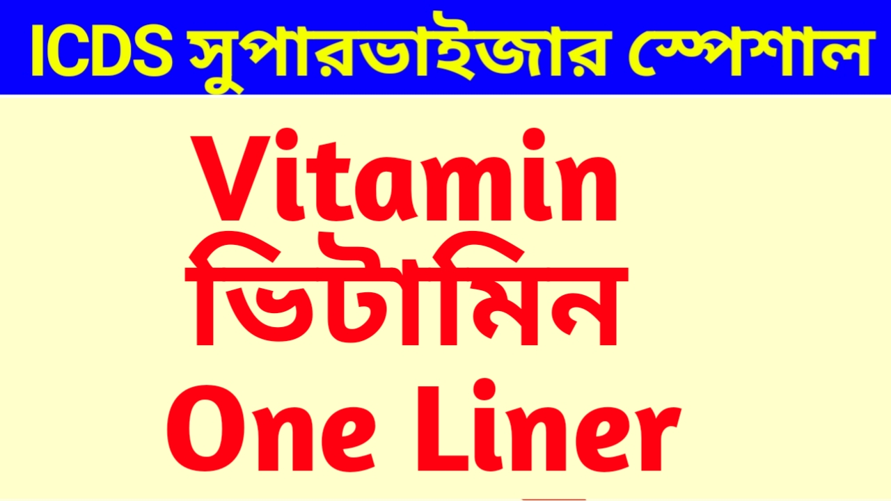 নমস্কার,বন্ধুরা আজ আমি তোমাদের সাথে শেয়ার করছি Wbpsc Icds supervisor exam এর biology এর Vitamin (ভিটামিন) চ্যাপ্টার থেকে one liner question answer এর pdf.